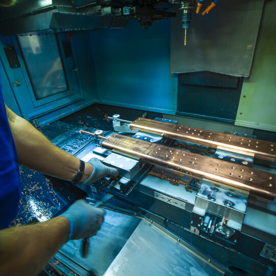 Bei Electris verfügen wir über computergesteuerte Bearbeitungsmaschinen mit 3 Achsen (3 D) oder mit 5 Achsen (5 D), mit denen wir die anspruchsvollsten Projekte für unsere Kunden verwirklichen können, wie z. B. Teile mit einer Länge von bis zu 4 m. Komplizierte Werkstücke werden automatisch durch rotierende Werkzeugschneiden hergestellt. Moderne Maschinen erlauben die Reduzierung der Fräszeit auf ein Minimum. Im Rahmen der Vorbereitung auf den Fräsvorgang an unseren CNC-Maschinen, erstellen wir den Entwurf der Komponente in einer 3D-Ansicht. Anschließend führen wir eine Simulation der Fahrten und Optimierung des Pfades durch, um Materialverluste zu reduzieren und möglichst viel Zeit zu sparen.